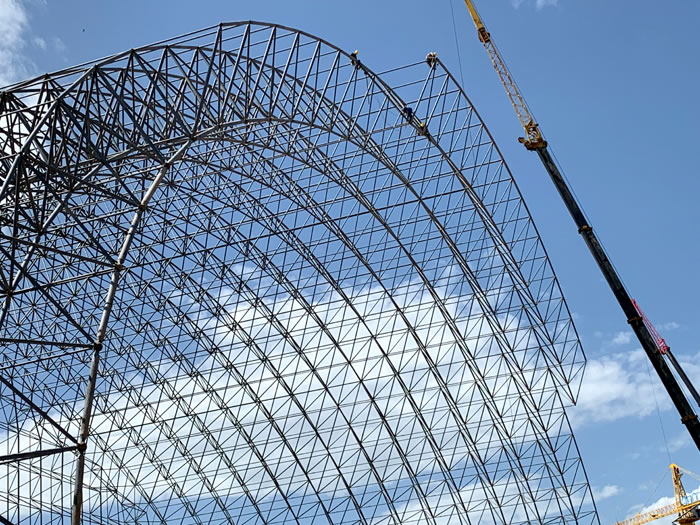 (2)网架加工前应对现场尺寸进行复测,确认无误后方可进行加工、安装;网架制作、运输、安装应遵守《空间网格结构技术规程》JGJ7-2010、《钢网架马鞍山螺栓球节点》JG/T 10-2009、《钢网架马鞍山螺栓球节点用高强度螺栓》 GB/T 16939-2016、《马鞍山钢结构马鞍山工程马鞍山施工规范》 GB50755-2012、《马鞍山钢结构马鞍山工程施工质量验收标准》 GB50205-2020。